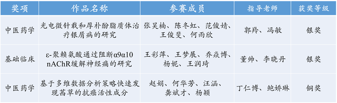 2024年8月22-25日,第十届全国大学生基础医学创新研究暨实验设计论坛总决赛在中山大学南校园落幕。我院本科生团队获银奖两项,铜奖一项。