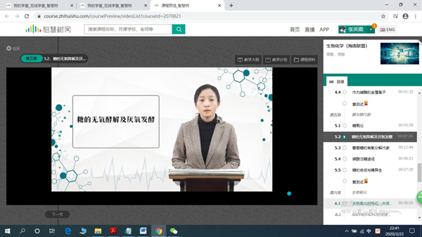 图1 智慧树平台《生物化学》(海南联盟)视频截图