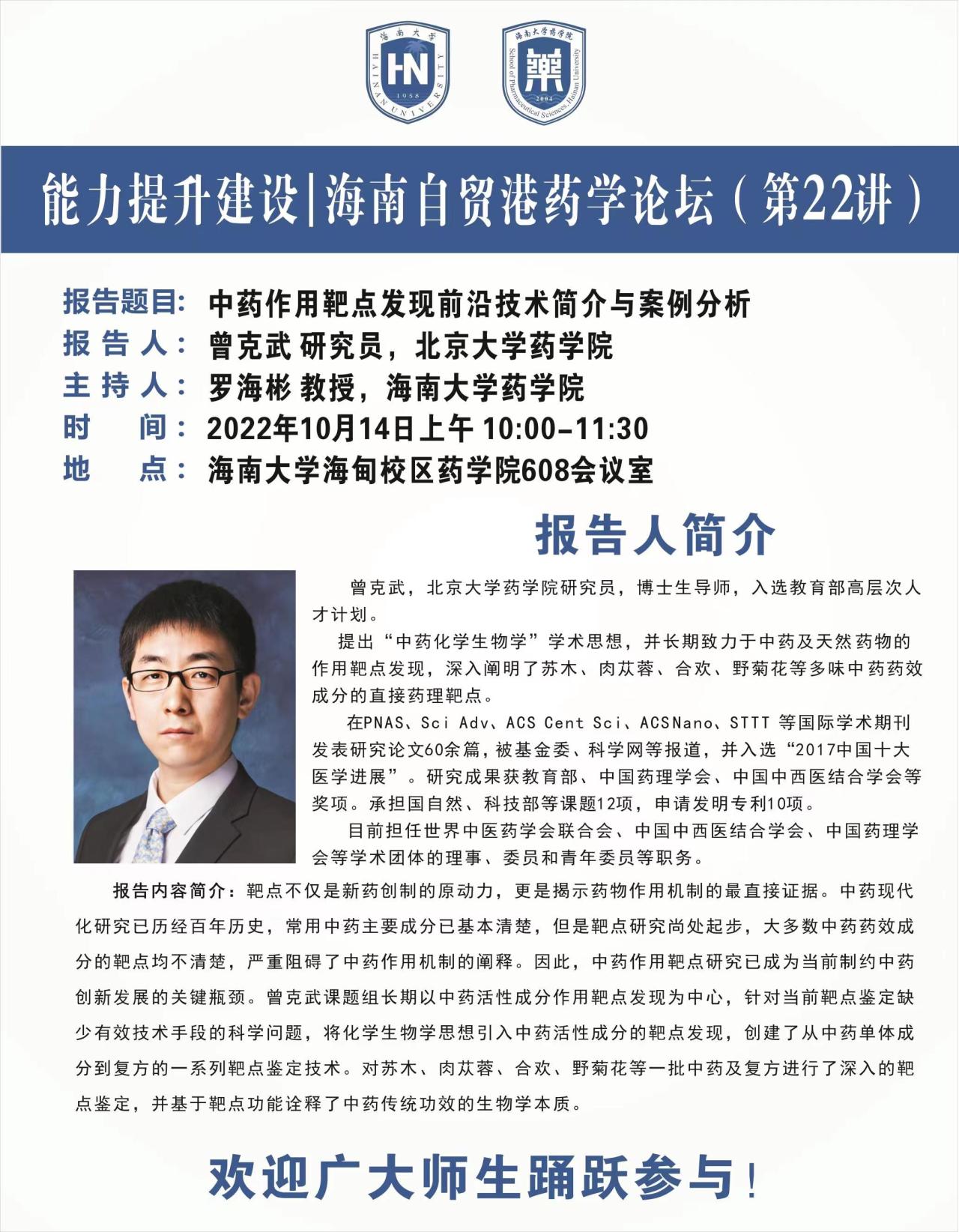 能力提升建设|海南自贸港药学论坛(第22讲)